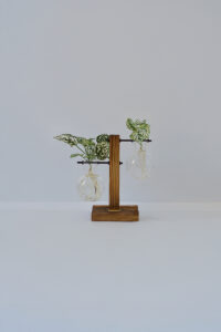 כלי לייחור מעץ עם שני מבחנות בצורה אסימטרית